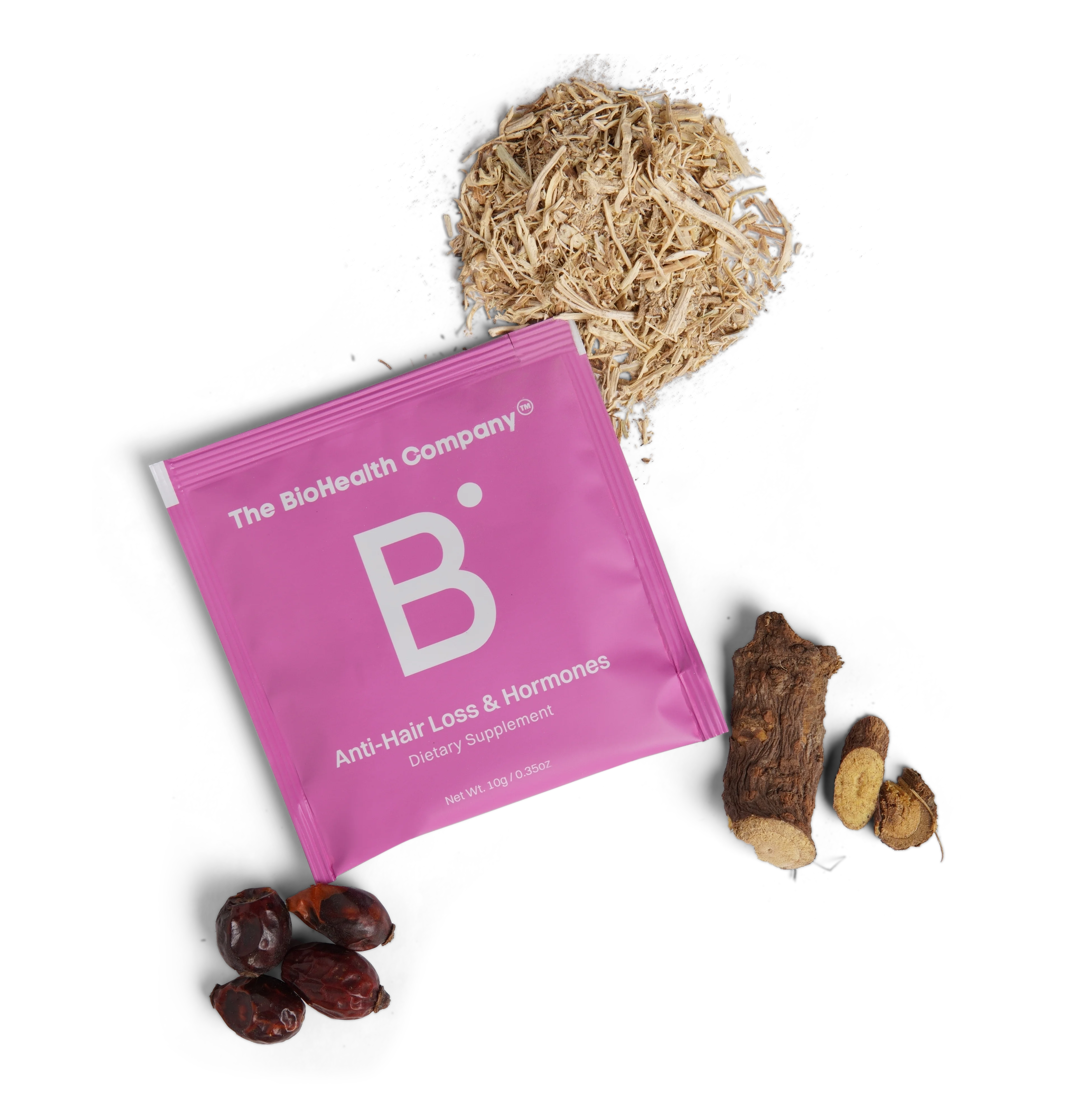Our Hair & Hormones Bags are the only clinically proven 100% natural solution that completely addresses alopecia and hormonal related problems. Featuring a blend of whole herbs in clinically effective dosages, including Stinging Nettle—nature’s intelligently designed solution for alopecia, PCOS, hyperandrogenism, and menopause. Backed by science and centuries of ancestral use, The BioHealth Company™ has discovered the breakthrough hair loss and hormone solution women have been waiting for.